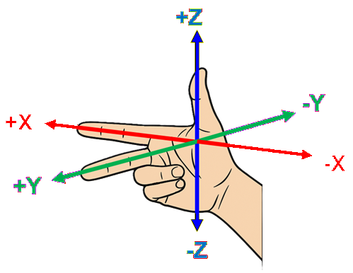 The direction in which each finger points represents the positive axis, while the opposite direction represents the negative axis.